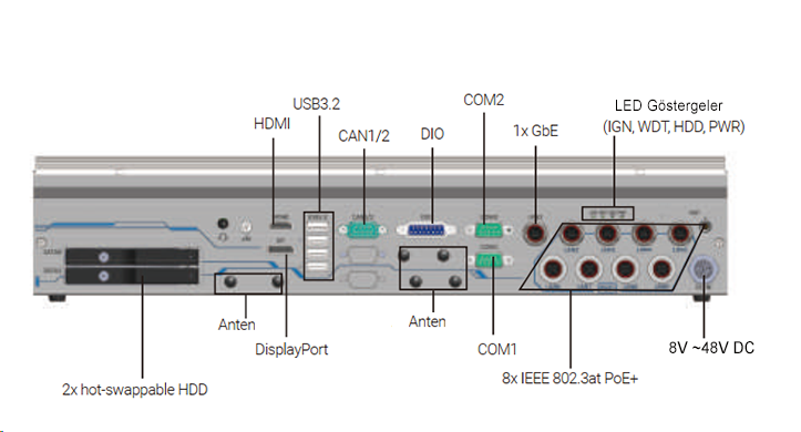 • 2x tam boy mPCIe yuvası (MVB modülleri için)
