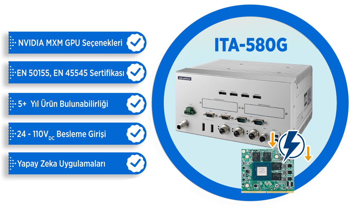 Sertifikalar : CE, FCC Class A, CCC, UL,CB, EN 50155 TX Class S2/C1, IEC 61373, EN 50121-3-2,EN 50121-4,EN45545-2