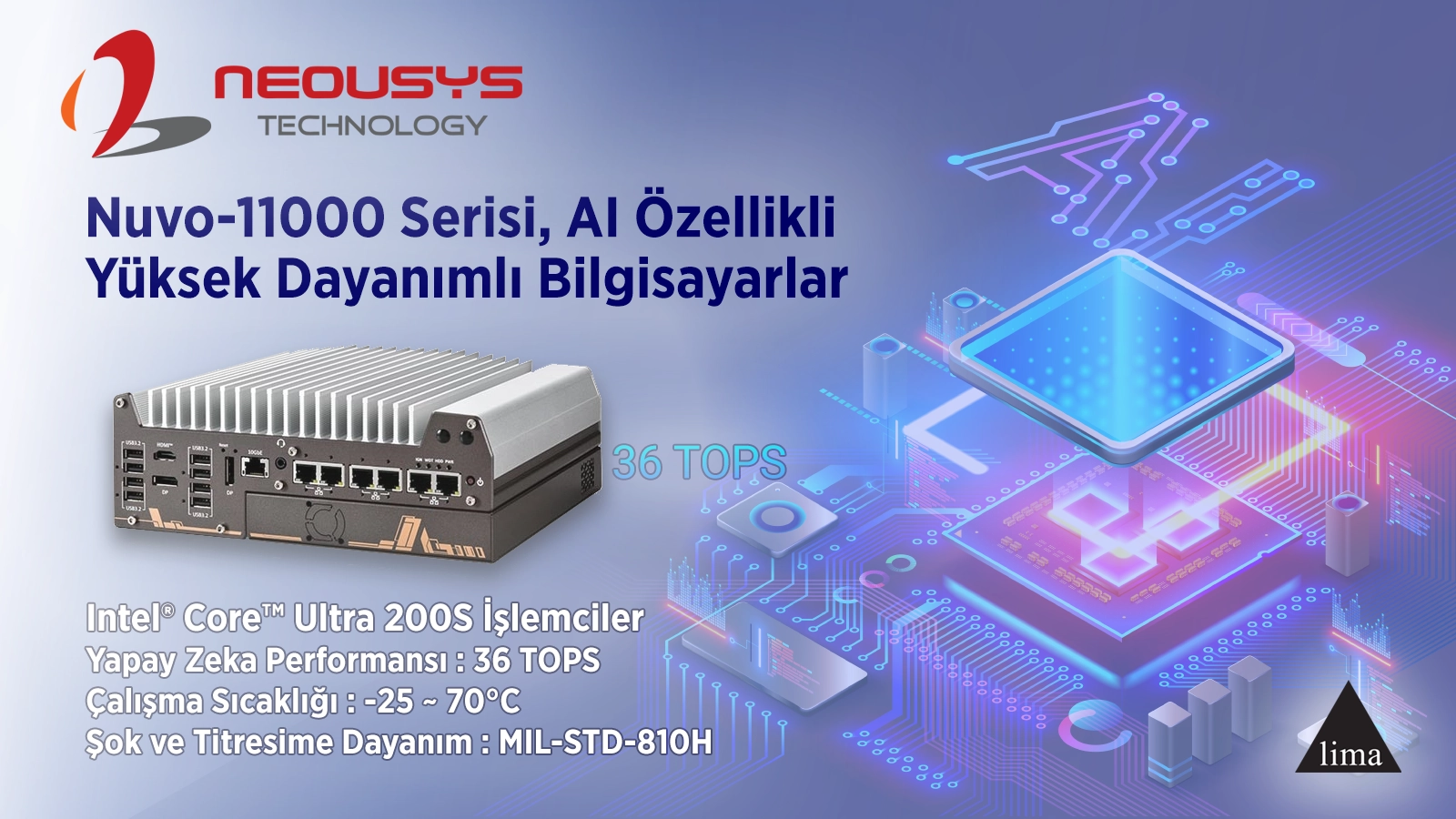 Nuvo-11000 serisi yüksek dayanımlı bilgisayarlar; Intel® Core™ Ultra 200S işlemciler (kod adı Arrow Lake) ve bütünleşik AI NPU işlemcileriyle; Ultra 100 serisine göre CPU performansında yaklaşık 1,2 kat artış sağlamaktadır. Ultra 200S işlemci ve bütünleşik Intel® Xe-LPG grafik işlemci yardımıyla yapay zeka NPU performansı 36TOPS’a erişmektedir. DDR5-6400 bellek ve PCIe Gen5 desteğiyle, çeşitli endüstriyel uygulamalarda performansı optimize ederek işlem gücünü önemli ölçüde artırırlar.