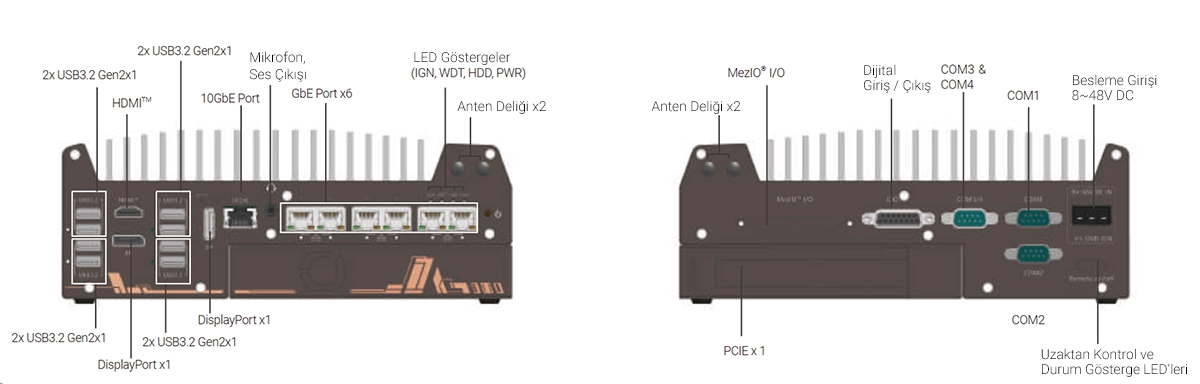 | Model No | Ethernet Portları | PCIe Kaset Yuvası | MezIO® Genişleme | 2.5″ SATA Yuva |